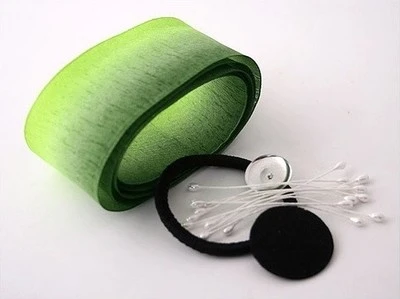 – 1 miếng vải dạ tròn nhỏ, nút kim loại tròn và 1 dây buộc tóc (bộ ba này gọi là phôi dây buộc tóc, thường đi liền với nhau, bạn có thể tự chế nếu không tiện mua)